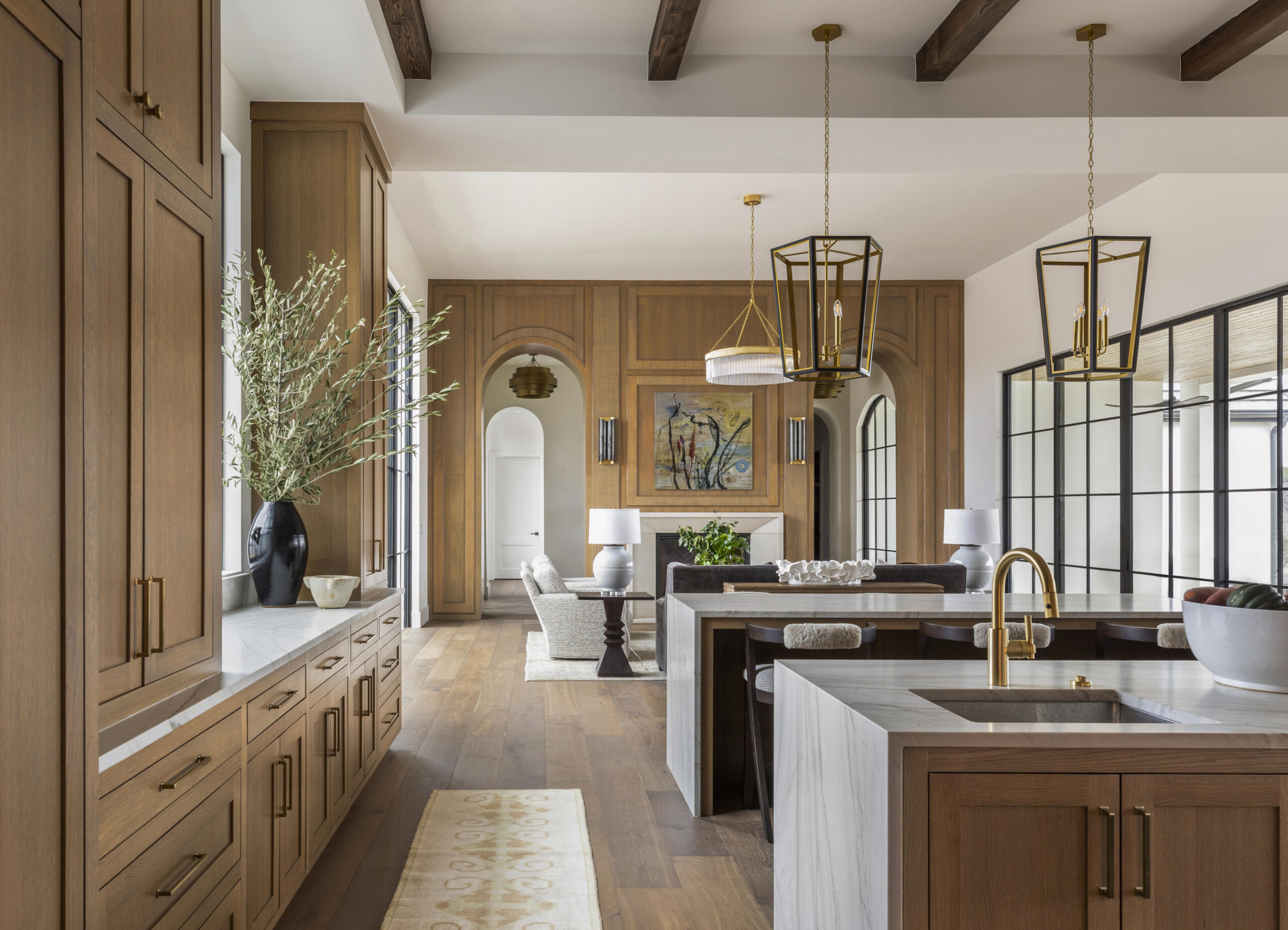 Designed by architect John Hathaway with interiors by Blair Burton, the home embraces what the team describes as “old-world bones with fresh skin,” a layered approach that pairs classic references with clean, modern execution.