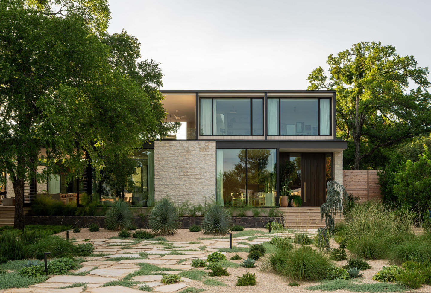 Designed by the Austin firm A Parallel Architecture and built by Shoberg Homes with interior design by North Carolina-based House of Nomad, the Timberline Residence also upholds some of the tenets of green building — evidenced by its use of locally quarried limestone and responsibly sourced cedar siding.