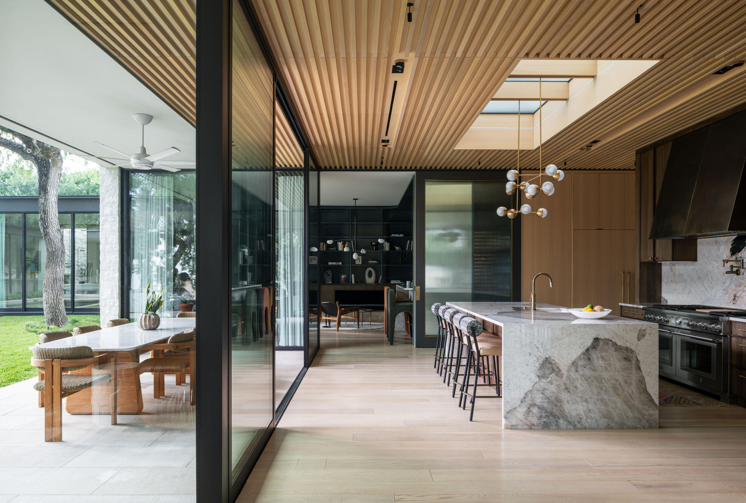 As iconic American architect and designer Charles Eames once said,“The details are not the details. They make the design.” Exemplifying the principles of Midcentury Modern design, Eames’ diverse work — which went beyond ubiquitous chairs and ottomans to include everything from whimsical toys to sprawling homes — celebrated impeccable craftsmanship in a way that’s reflected in the contemporary trend of quiet luxury. A highlight of the 2025 AIA Austin Homes Tour — taking place October 25 and 26 — the Timberline Residence in Rollingwood smartly embodies both of these design movements, leaning into the timeless Midcentury aesthetics while favoring fixtures and hardware that are simultaneously minimalist and luxurious.